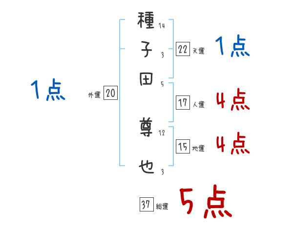 天運![]() | 種子田尊也さんの天運は22画の1つ星!努力することが苦手ないっぽう手先が器用。芸術性にも優れる。 家系が持つ宿命的な運勢を表します。祖先から受け継いだ苗字ですので自分の力が及びません。家柄を象徴します。 |