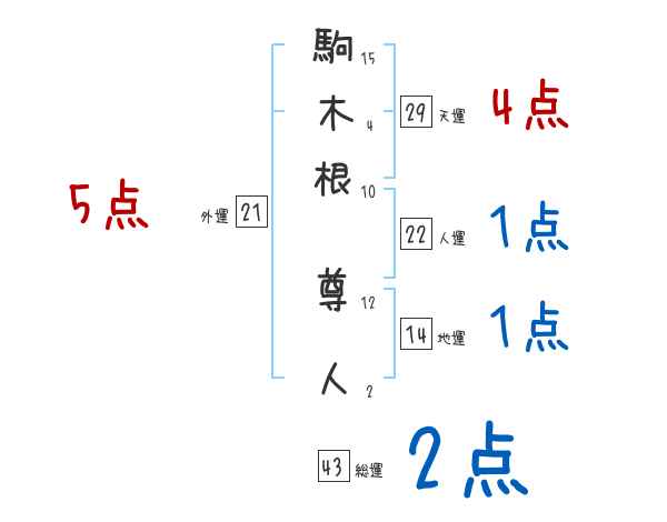 駒木根尊人さんの画数の鑑定結果