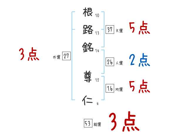 根路銘尊仁さんの画数の鑑定結果