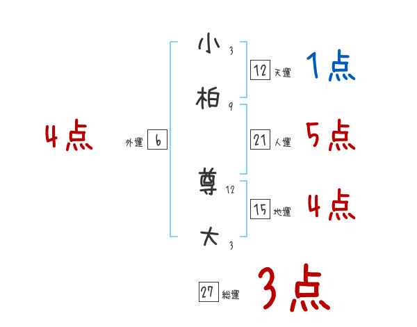 総運![]() | 小柏尊大さんの総運は27画の3つ星!頭脳明晰だが強情で摩擦が多い傾向。孤立に注意。 あなたの人生を表す1番重要な運勢です。生涯を通じて影響する総合運となり、主に50歳以降の晩年期に影響を及ぼします。 |