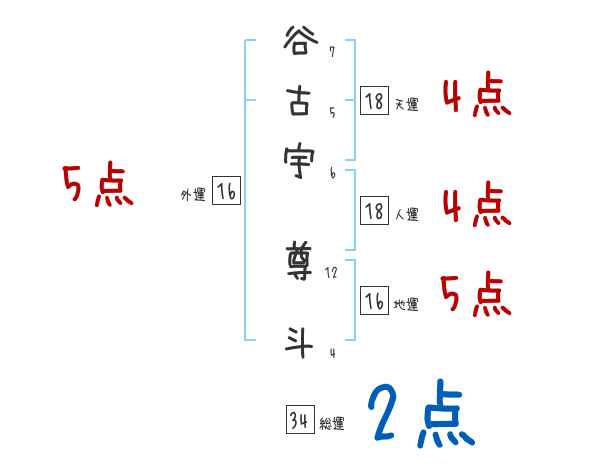 谷古宇尊斗さんの画数の鑑定結果