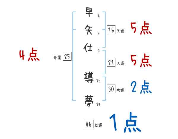 天運![]() | 早矢仕導夢さんの天運は16画の5つ星!人望が厚く大きく発展する。逆転成功が見える。 家系が持つ宿命的な運勢を表します。祖先から受け継いだ苗字ですので自分の力が及びません。家柄を象徴します。 |