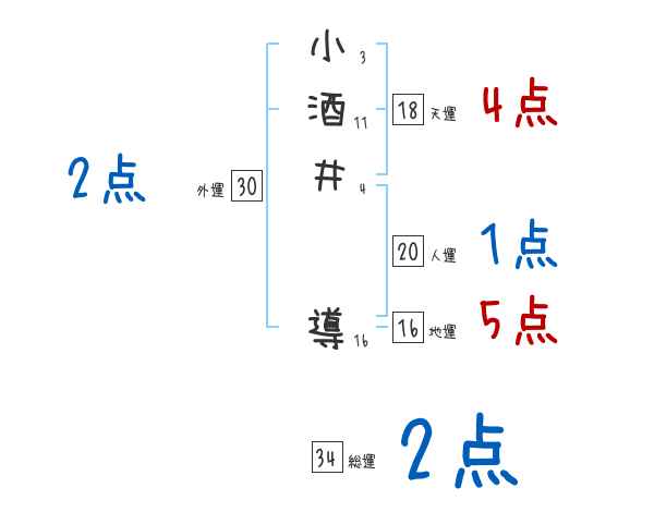 総運![]() | 小酒井導さんの総運は34画の2つ星!独創性に優れるが、自尊心が強く災難に注意しましょう。 あなたの人生を表す1番重要な運勢です。生涯を通じて影響する総合運となり、主に50歳以降の晩年期に影響を及ぼします。 |
