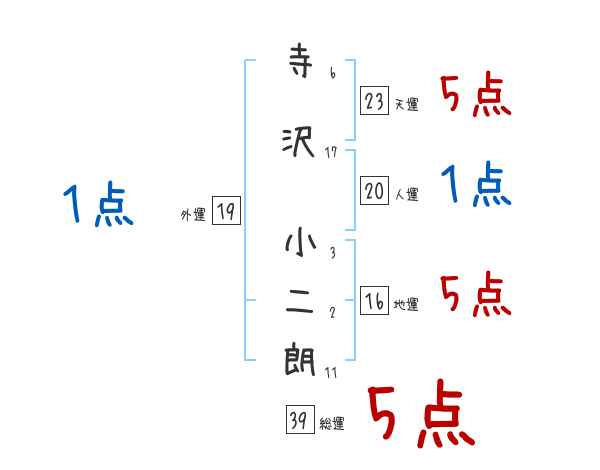 寺沢小二朗さんの画数の鑑定結果
