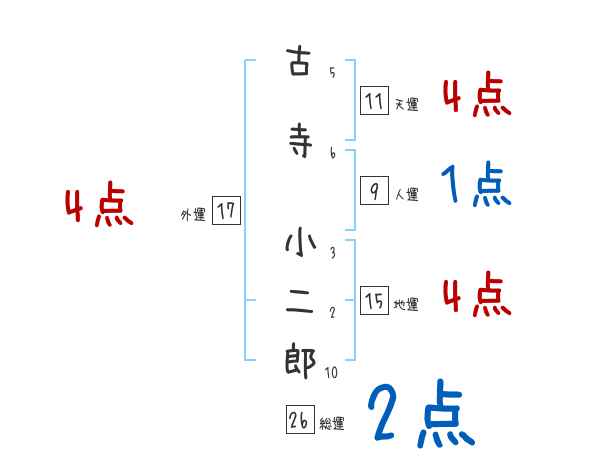 古寺小二郎さんの画数の鑑定結果