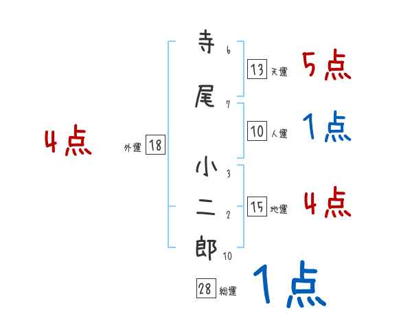 寺尾小二郎さんの画数の鑑定結果
