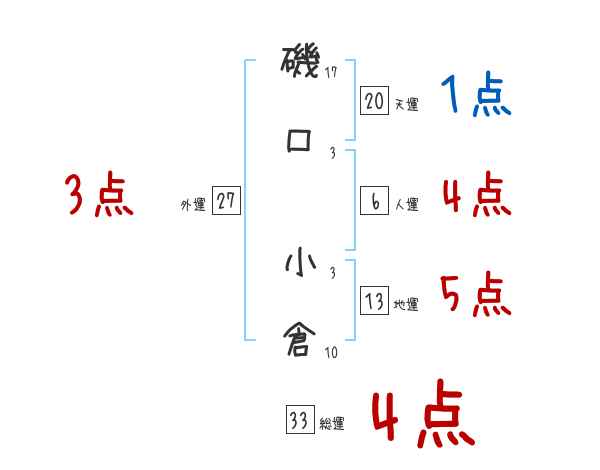 磯口小倉さんの画数の鑑定結果