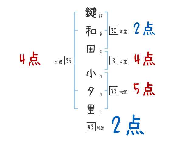 鍵和田小夕里さんの画数の鑑定結果