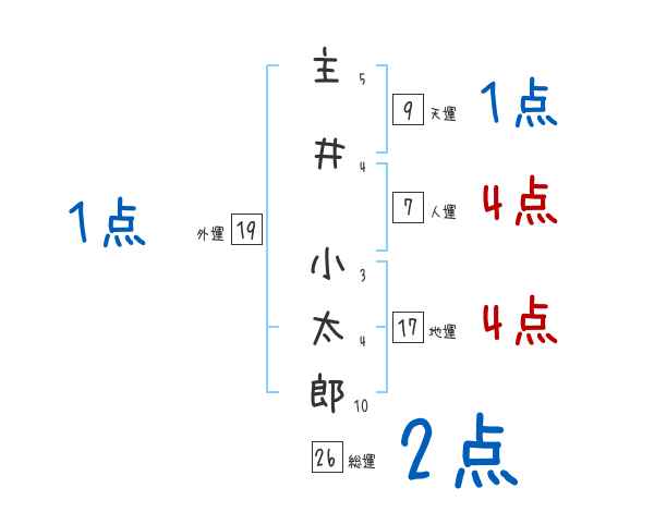 天運![]() | 主井小太郎さんの天運は9画の1つ星!消極的で才能を発揮することが苦手なことも。周りの意見に耳を傾けましょう。 家系が持つ宿命的な運勢を表します。祖先から受け継いだ苗字ですので自分の力が及びません。家柄を象徴します。 |