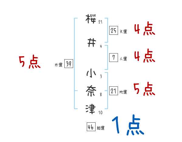 桜井小奈津さんの画数の鑑定結果