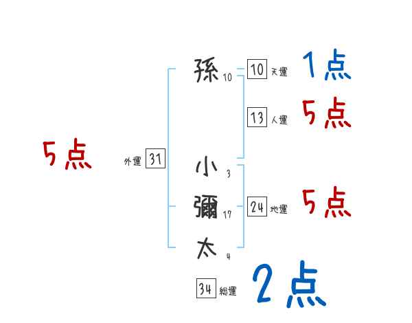 孫小彌太さんの画数の鑑定結果