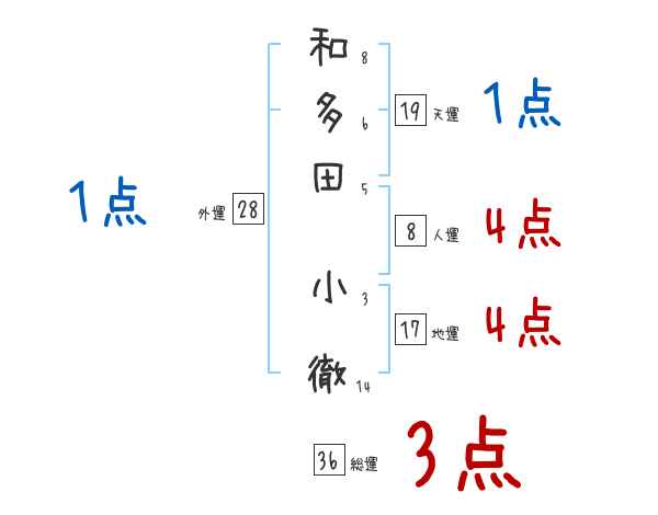 総運![]() | 和多田小徹さんの総運は36画の3つ星!先見性が豊かです。多少神経質で苦労することも。 あなたの人生を表す1番重要な運勢です。生涯を通じて影響する総合運となり、主に50歳以降の晩年期に影響を及ぼします。 |