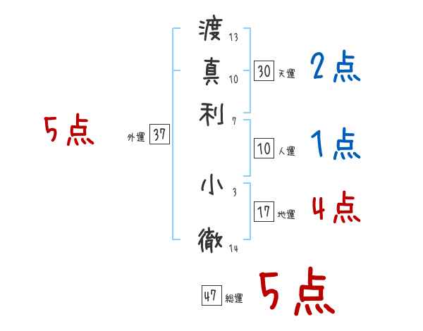 天運![]() | 渡真利小徹さんの天運は30画の2つ星!浮き沈みの激しさに注意しましょう。 家系が持つ宿命的な運勢を表します。祖先から受け継いだ苗字ですので自分の力が及びません。家柄を象徴します。 |