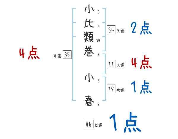 小比類巻小春さんの画数の鑑定結果