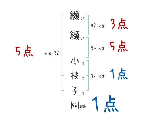 天運![]() | 纐纈小枝子さんの天運は42画の3つ星!病気に注意。多芸であるが消極的でおとなしい。 家系が持つ宿命的な運勢を表します。祖先から受け継いだ苗字ですので自分の力が及びません。家柄を象徴します。 |