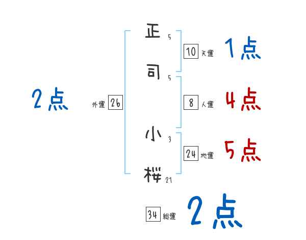 正司小桜さんの画数の鑑定結果