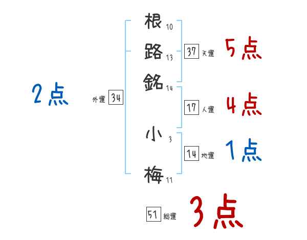 根路銘小梅さんの画数の鑑定結果
