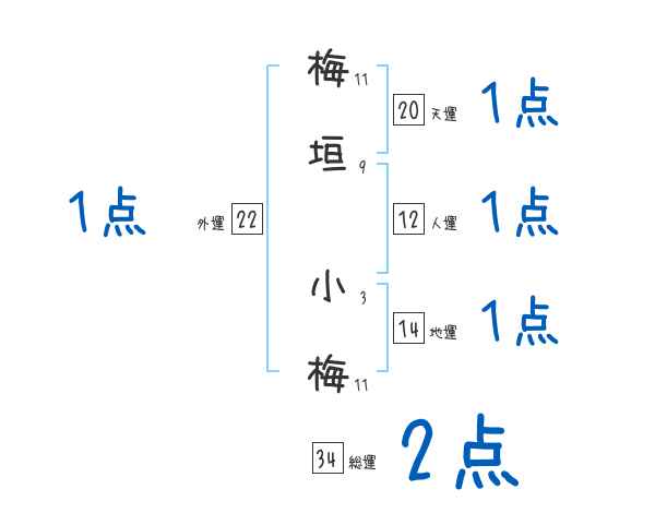 梅垣小梅さんの画数の鑑定結果