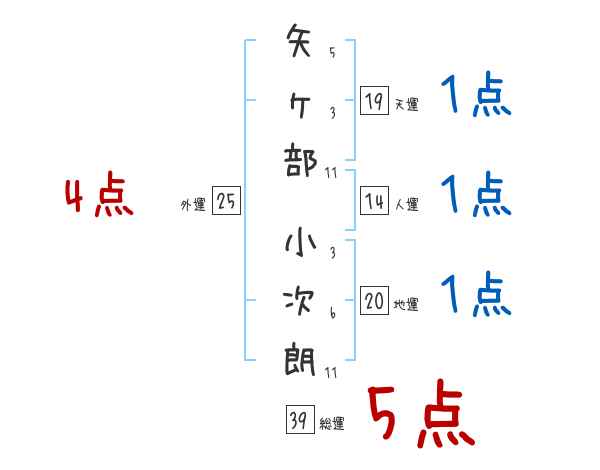 矢ヶ部小次朗さんの画数の鑑定結果