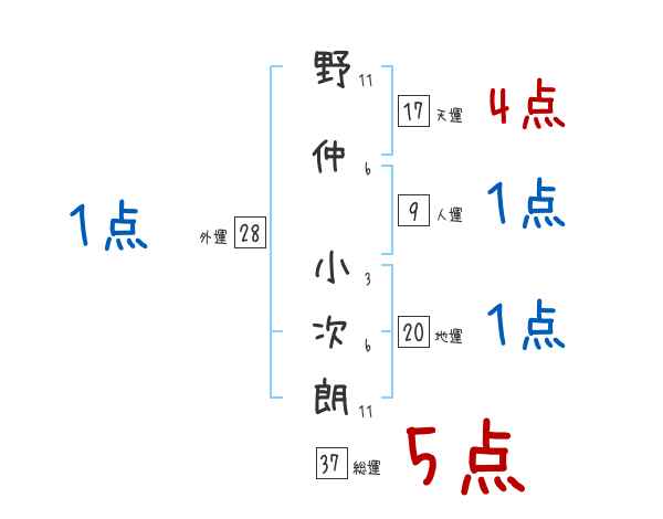野仲小次朗さんの画数の鑑定結果