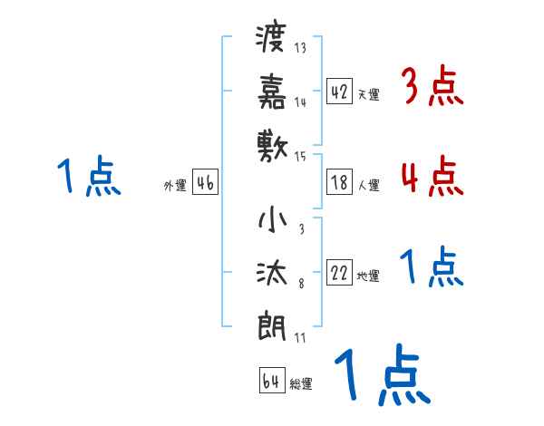 渡嘉敷小汰朗さんの画数の鑑定結果