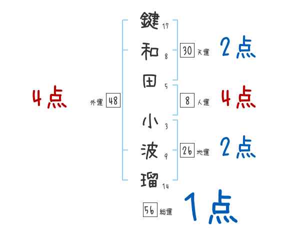 鍵和田小波瑠さんの画数の鑑定結果