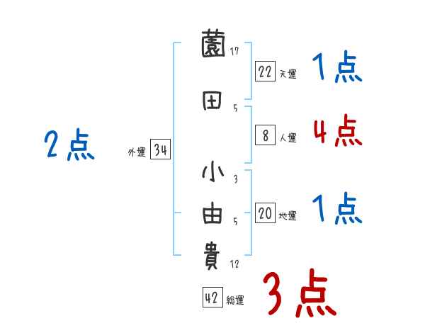 総運![]() | 薗田小由貴さんの総運は42画の3つ星!病気に注意。多芸であるが消極的でおとなしい。 あなたの人生を表す1番重要な運勢です。生涯を通じて影響する総合運となり、主に50歳以降の晩年期に影響を及ぼします。 |