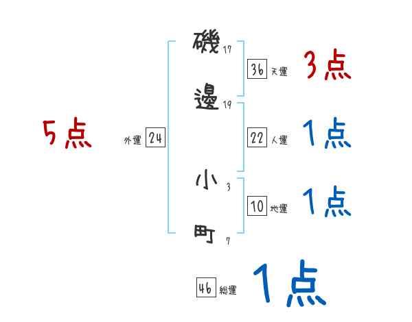 磯邊小町さんの画数の鑑定結果