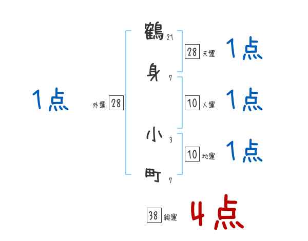 鶴身小町さんの画数の鑑定結果