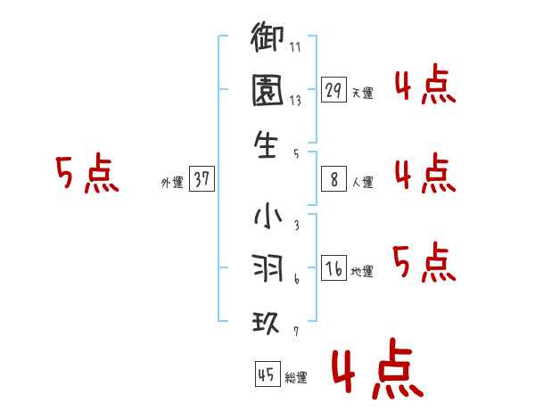 外運![]() | 御園生小羽玖さんの外運は37画の5つ星!努力家で順応性に優れる。現実的な考え方ができ忠実に物事をこなす。 生活面を象徴する運勢です。外部から受ける影響力を表し、結婚運、家庭運や職場、環境への順応性を表します。 |