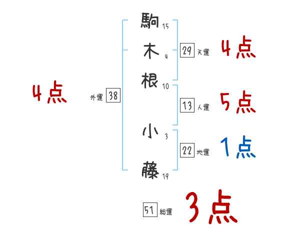 駒木根小藤さんの画数の鑑定結果