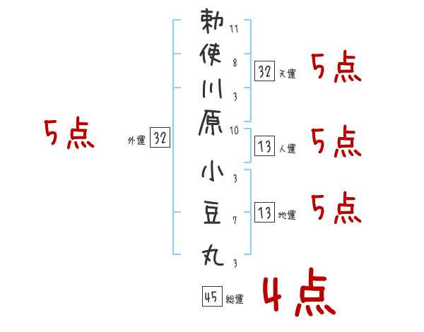 勅使川原小豆丸さんの画数の鑑定結果