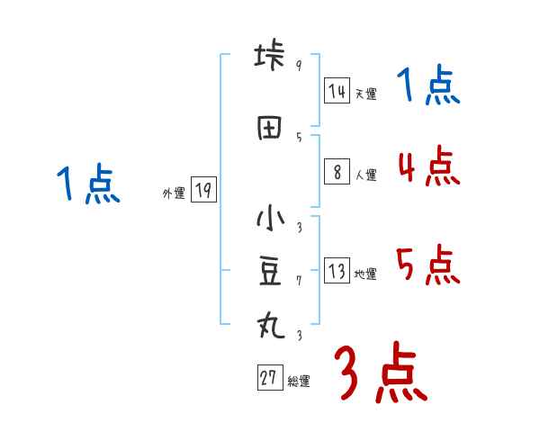 天運![]() | 垰田小豆丸さんの天運は14画の1つ星!人に対して優しいがストレスを溜め込みがち。人間関係のトラブルを避けるよう気をつけましょう。 家系が持つ宿命的な運勢を表します。祖先から受け継いだ苗字ですので自分の力が及びません。家柄を象徴します。 |