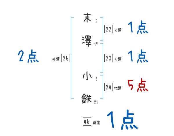 末澤小鉄さんの画数の鑑定結果