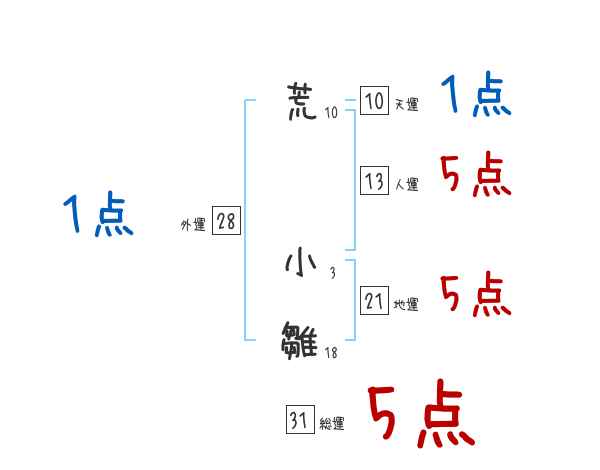 荒小雛さんの画数の鑑定結果