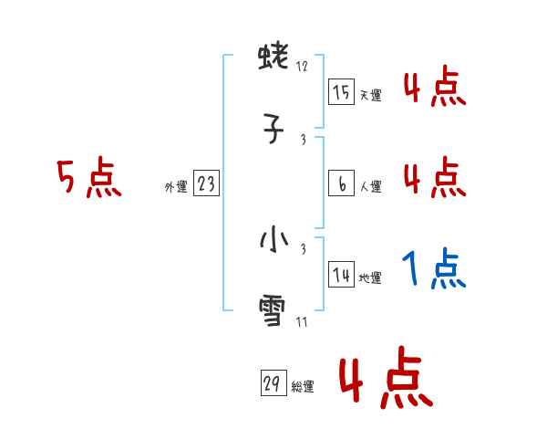 蛯子小雪さんの画数の鑑定結果
