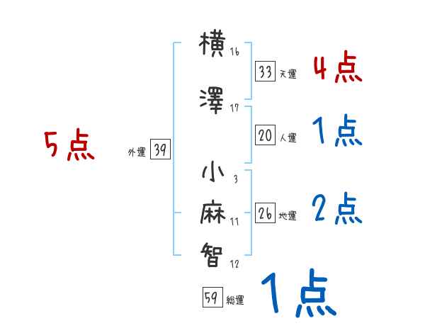 横澤小麻智さんの外運は39画の5つ星