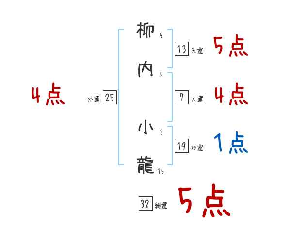 柳内小龍さんの画数の鑑定結果