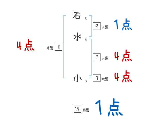 天運![]() | 石水小さんの天運は9画の1つ星!消極的で才能を発揮することが苦手なことも。周りの意見に耳を傾けましょう。 家系が持つ宿命的な運勢を表します。祖先から受け継いだ苗字ですので自分の力が及びません。家柄を象徴します。 |