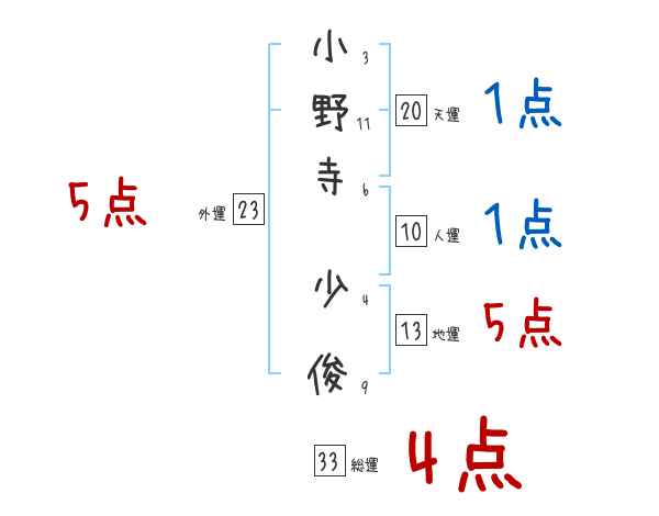 小野寺少俊さんの画数の鑑定結果