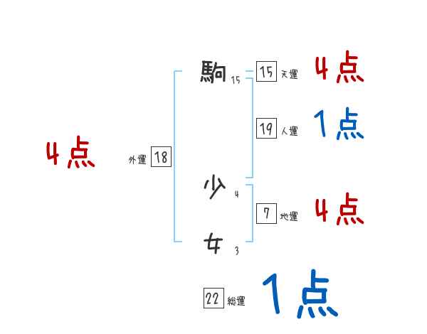 駒少女さんの外運は18画の4つ星