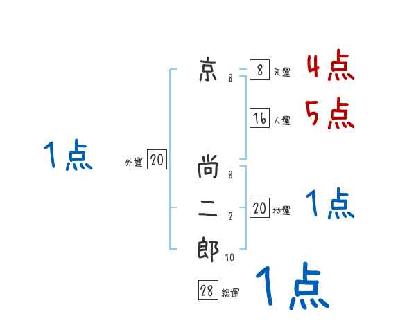 京尚二郎さんの画数の鑑定結果