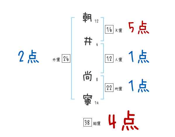 朝井尚寧さんの画数の鑑定結果
