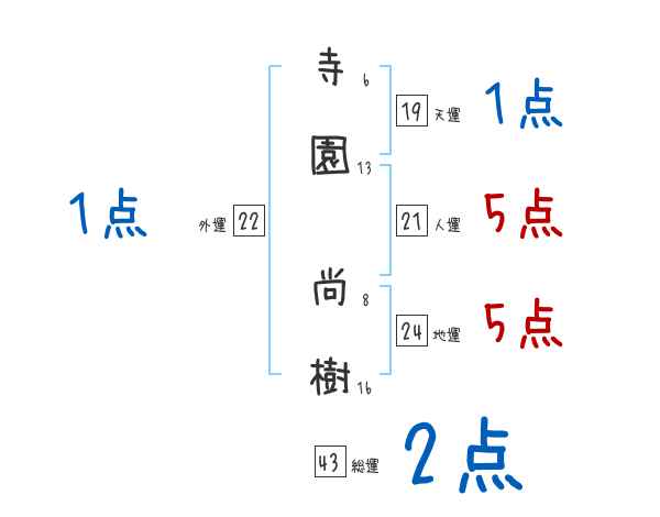 寺園尚樹さんの画数の鑑定結果