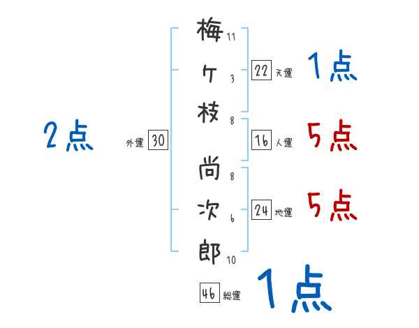 梅ヶ枝尚次郎さんの画数の鑑定結果