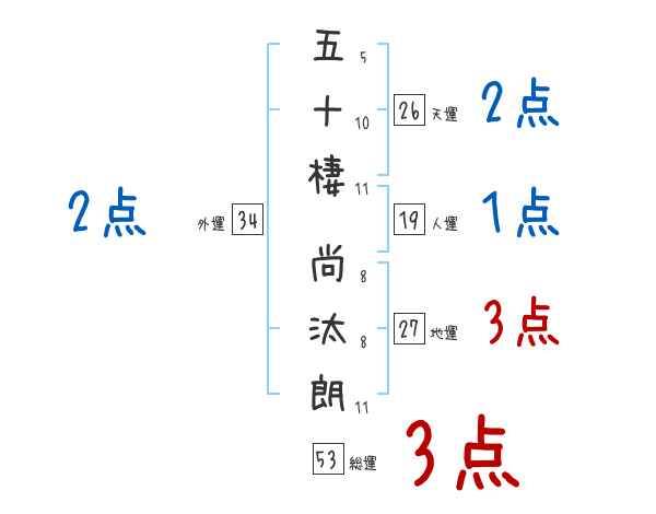 五十棲尚汰朗さんの画数の鑑定結果