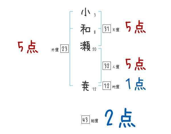 小和瀬尭さんの画数の鑑定結果
