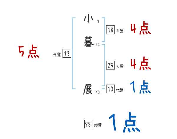 小暮展さんの画数の鑑定結果