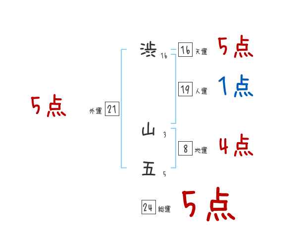 渋山五さんの画数の鑑定結果