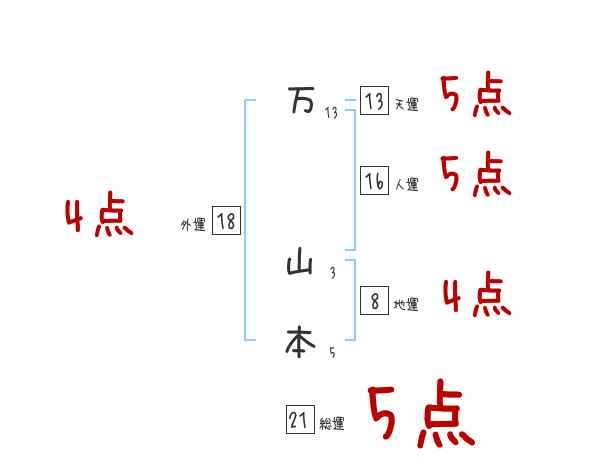 万山本さんの画数の鑑定結果